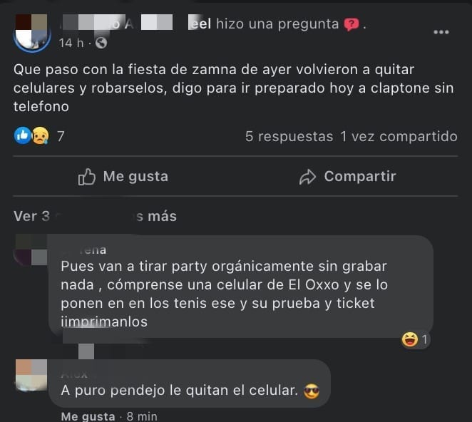 En la mayoría de las locaciones como Zamna a los asistentes les quitan los celulares al llegar con la promesa de ser devueltos al salir, pero empieza a haber una constante, como muchos tuluminatis salen enfiestados, los celulares se “están perdiendo”.