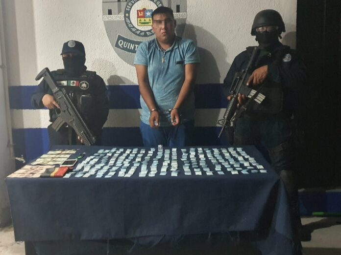 Durante un patrullaje preventivo el jueves 24 de junio, los oficiales macaron el alto a quien se identificó como Jesús “N” de 25 años de edad, originario del estado de Veracruz, quien transitaba a bordo de una motocicleta sobre la avenida Cobá con carretera Boca Paila.