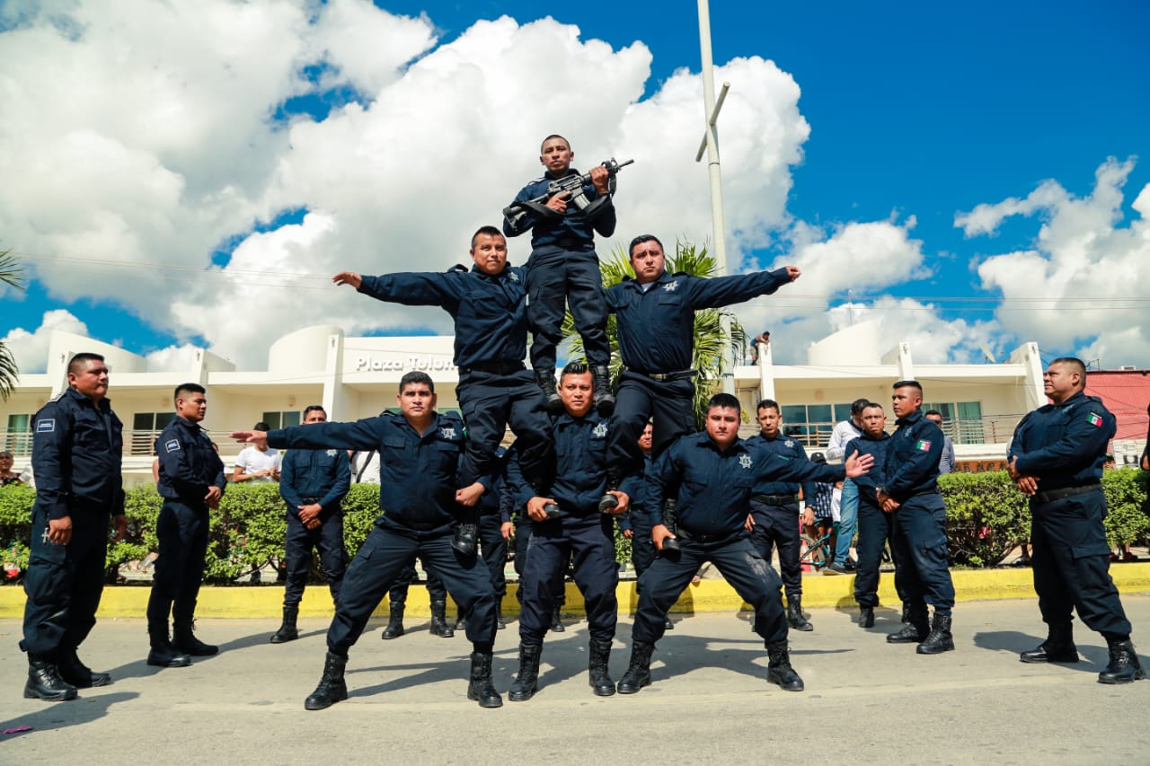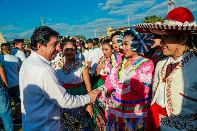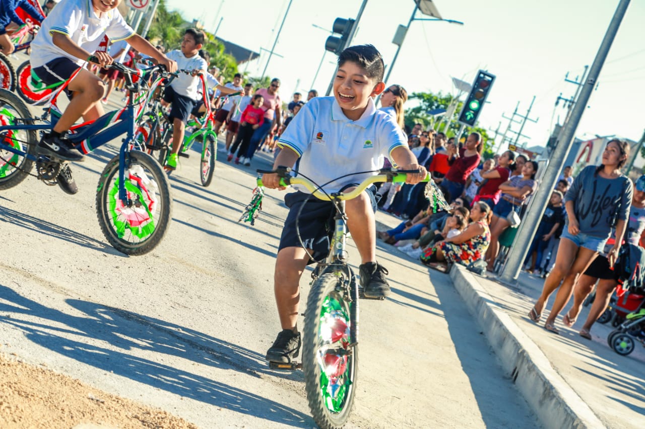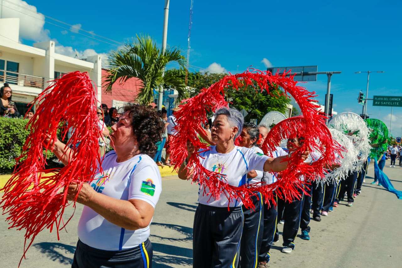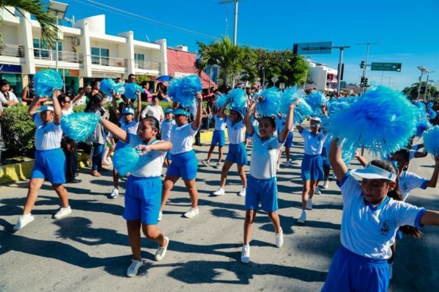 Concluido el acto cívico y en compañía de su esposa Celia Aguilar Mas, el presidente saludos a los estudiantes, deportistas y cuerpos de seguridad que participaron en el desfile y posteriormente se dirigió a las gradas instaladas sobre la avenida Tulum, frente a Palacio Municipal para presenciar el desfile en compañía de las familias tulumnenses.