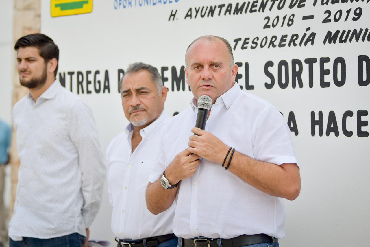Tulum, 12 de marzo de 2020.-Durante la entrega de premios a los ganadores del Sorteo Predial Tulum 2020 el Tesorero, Edgardo Díaz Aguilar, indicó que “todos los días vienen inversionistas a abrir negocios y hoteles, a los cuales brindamos facilidades para que funden sus empresas y contribuyan a la grandeza de Tulum¨.