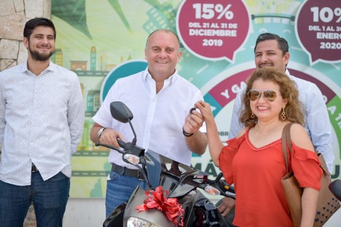 Posteriormente a nombre del presidente, Víctor Mas Tah, entregó los premios a los siguientes contribuyentes: Lorenza Cen Balam, quien obtuvo como premio un auto Suzuki, en tanto Francisco Cantón Gutiérrez, Alejandra Velasco Osio y Guadalupe Velasco Ojeda, recibieron, cada uno, una motocicleta.