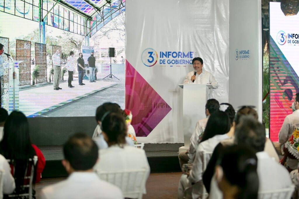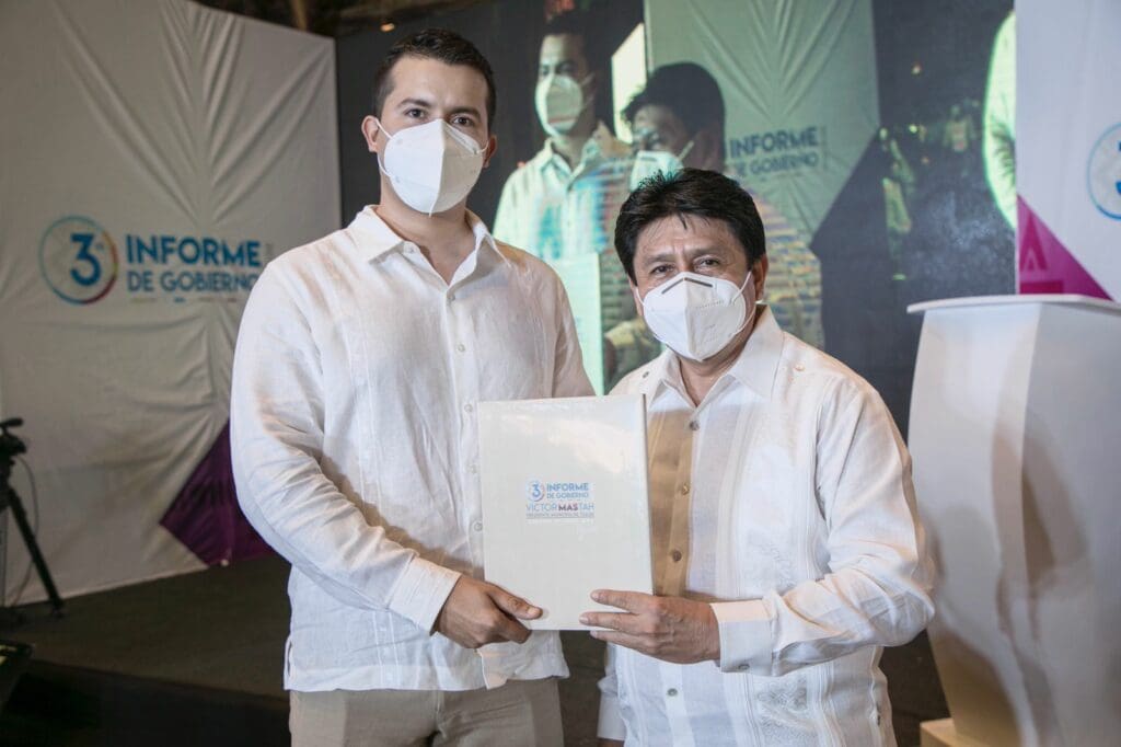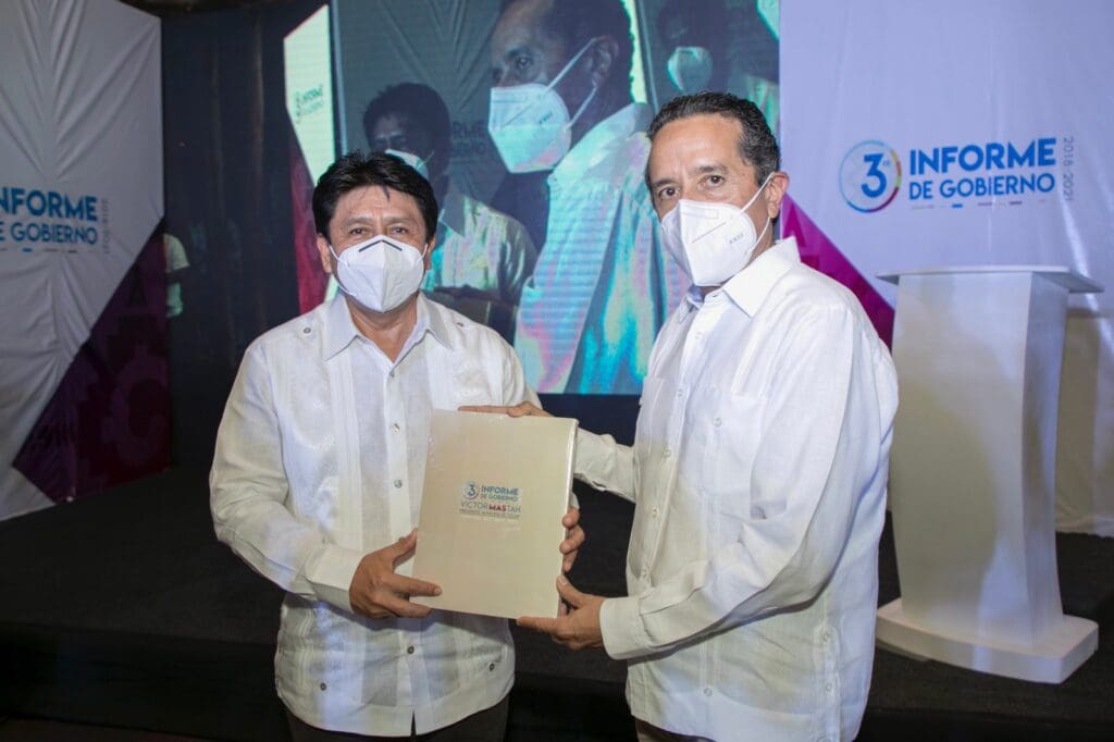 Tulum, Quintana Roo a 13 de septiembre de 2021.- El presidente Municipal de Tulum, Víctor Mas Tah, rindió el tercer informe de gobierno de la administración del Ayuntamiento de Tulum 2018-2021, acompañado por el gobernador del estado, Carlos Joaquín González y los regidores integrantes del cabildo, donde destacó el crecimiento del municipio en el rubro de infraestructura, servicios públicos y desarrollo económico mediante el trabajo conjunto con la sociedad para brindar certeza y transparencia en las acciones emprendidas.