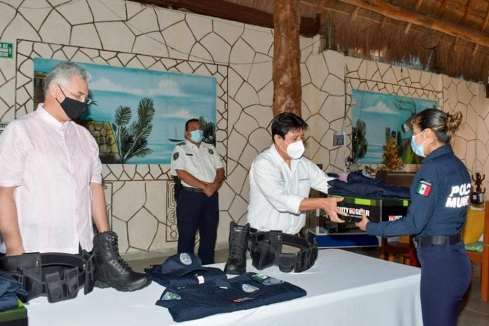 Tulum.- Para fortalecer y dignificar su labor, elementos de la Policía Quintana Roo Tulum, recibieron dos mil 289 prendas de uniformes de manos del presidente municipal de Tulum, Víctor Mas Tah y el encargado del despacho de la Secretaría de Seguridad Pública del estado, Lucio Hernández Gutiérrez; asimismo, 98 policías recibieron su Certificado Único Policial que los acredita como elementos capaces, con habilidades, conocimientos y aptitudes para pertenecer a la corporación.