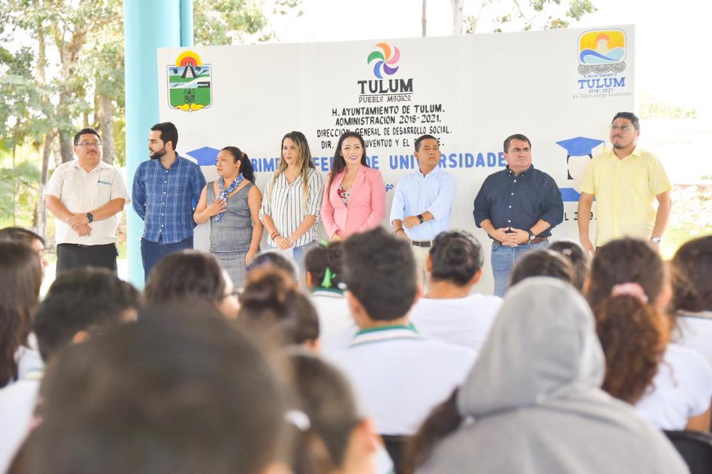 Tulum.- Con la finalidad de que los jóvenes de Tulum conozcan la oferta académica y reciban orientación vocacional, se realizó la Primera Feria de Universidades, la cual fue organizada por la Dirección de la Juventud y el Deporte, a cargo de Rifka Queruel Nussbaum.