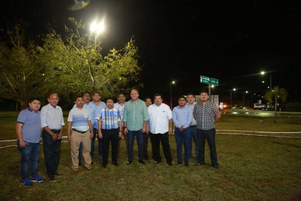 Tulum.- El presidente municipal, Víctor Mas Tah, encabezó el encendido del alumbrado público en la glorieta y entrada al poblado de Coba, el cual estuvo en el abandono total a lo largo de seis años pese a ser un destino turístico importante del noveno municipio.