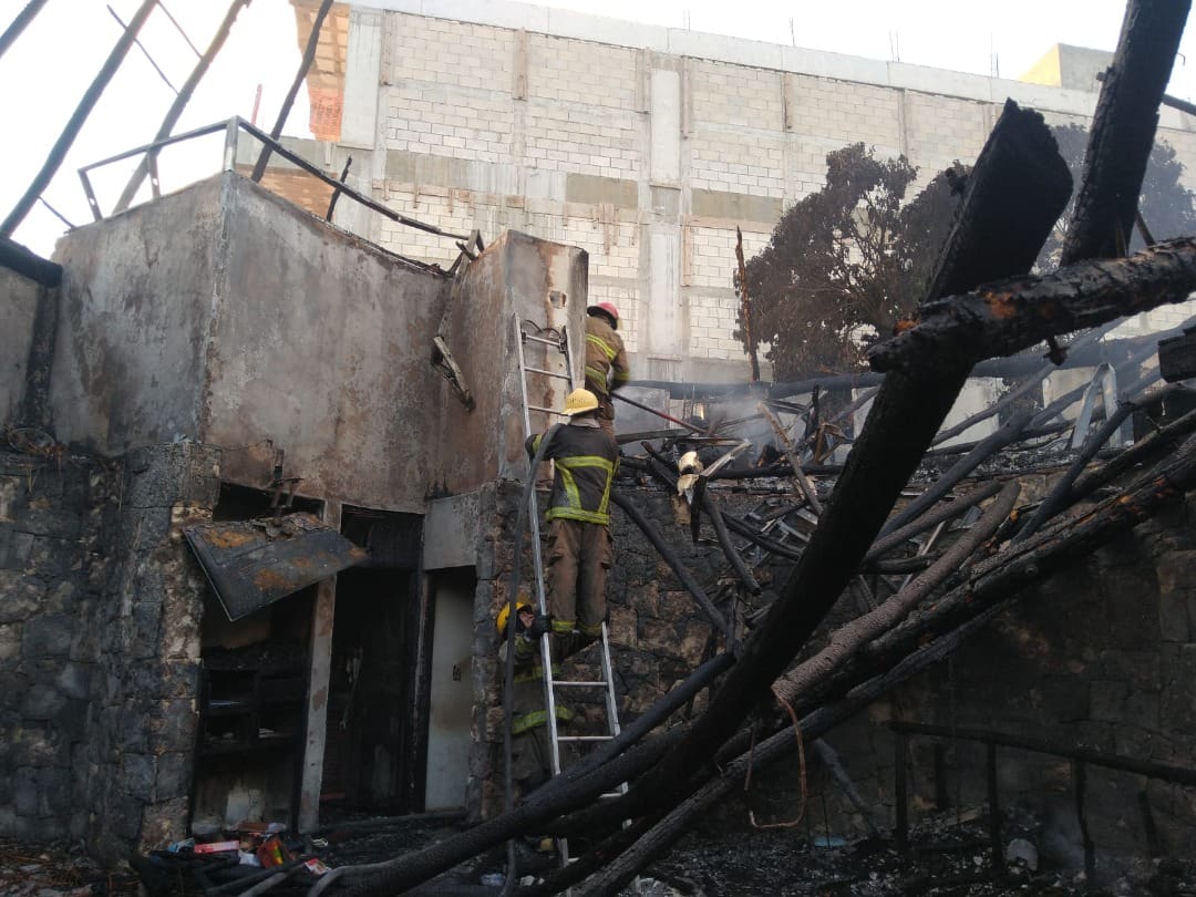 Bomberos debieron movilizarse a este local de madera de dos pisos, ubicado en la carretera a Boca Paila con Mercurio (frente al supermercado Chedraui), donde las llamas ya abarcaban toda esta estructura.
