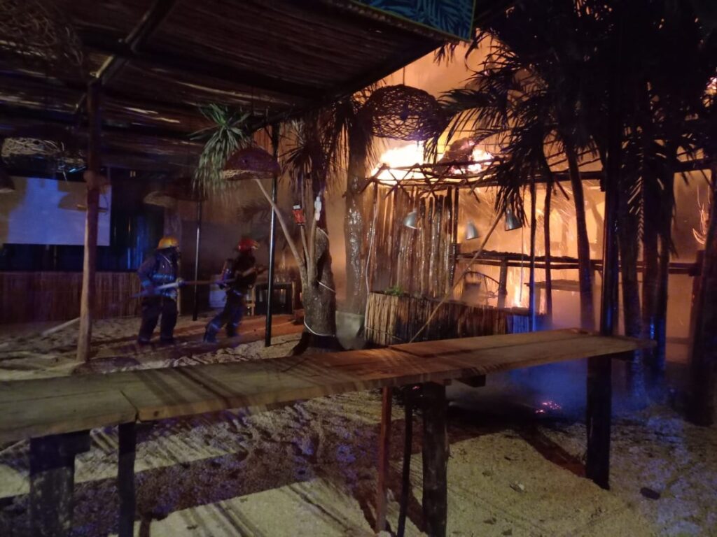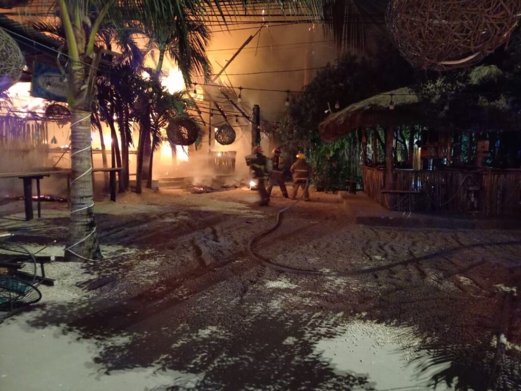 Tulum.- El bar “Funky Burrito”, ubicado cerca de la entrada norte de la ciudad fue casi totalmente consumido en un incendio surgido esta mañana.