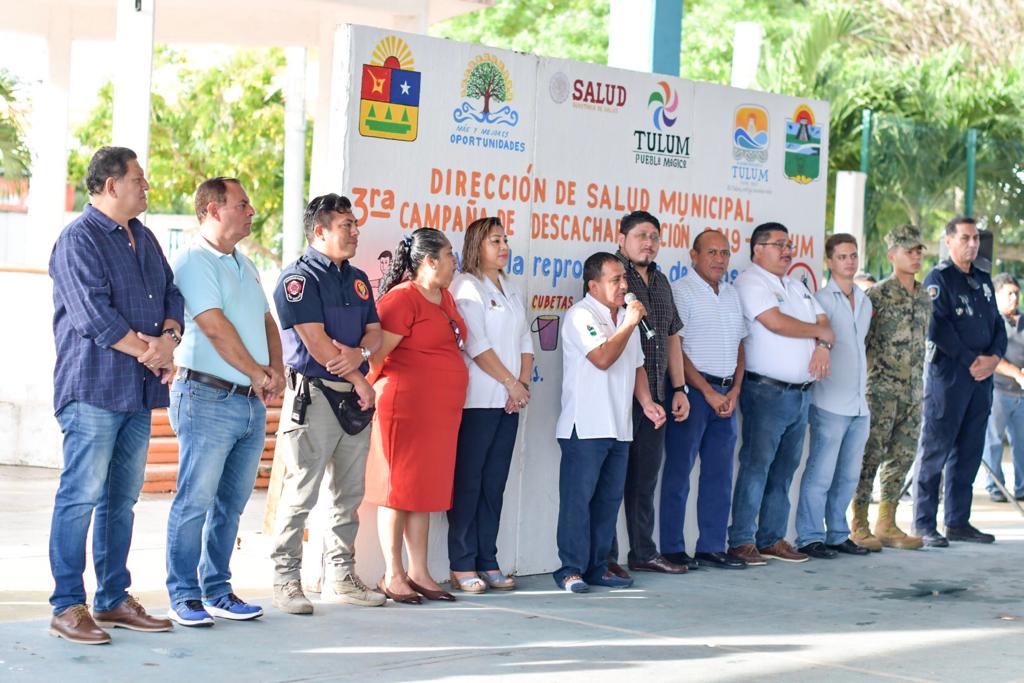 Tulum.- Con el propósito de evitar la proliferación del mosco transmisor del dengue, zika y chicongunya en toda la geografía municipal, el ayuntamiento de Tulum, inició una intensa campaña de descacharrización, la cual se realizará del 4 al 8 de Noviembre de 2019.
