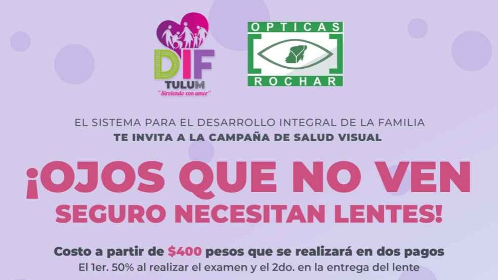 Bajo el lema “¡Ojos que no ven, seguro necesitan lentes!”, la institución presidida por la licenciada Ileana Canul de Dzul señala que esta tendrá un costo de solo 400 pesos de los cuales 50% se paga al realizar el examen y el otro 50% con la entrega del lente.