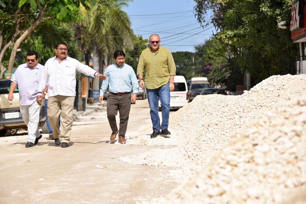 Acompañado del Director General de Obras y Servicios Públicos, Jorge Luis Xiu Manzanero, el Tesorero Municipal, Edgardo Díaz Aguilar y el Director de Gobierno, Antonio de la Torre Flota, realizó un recorrido de supervisión de tres obras, en donde los encargados de los trabajos le informaron sobre los avances que llevan y confirmaron que concluirán antes del tiempo estipulado en los contratos, de tal manera que los vecinos contarán con mejores vialidades antes de las fiestas decembrinas.