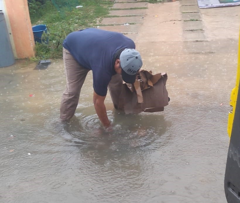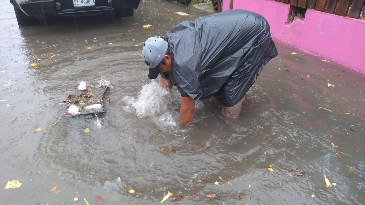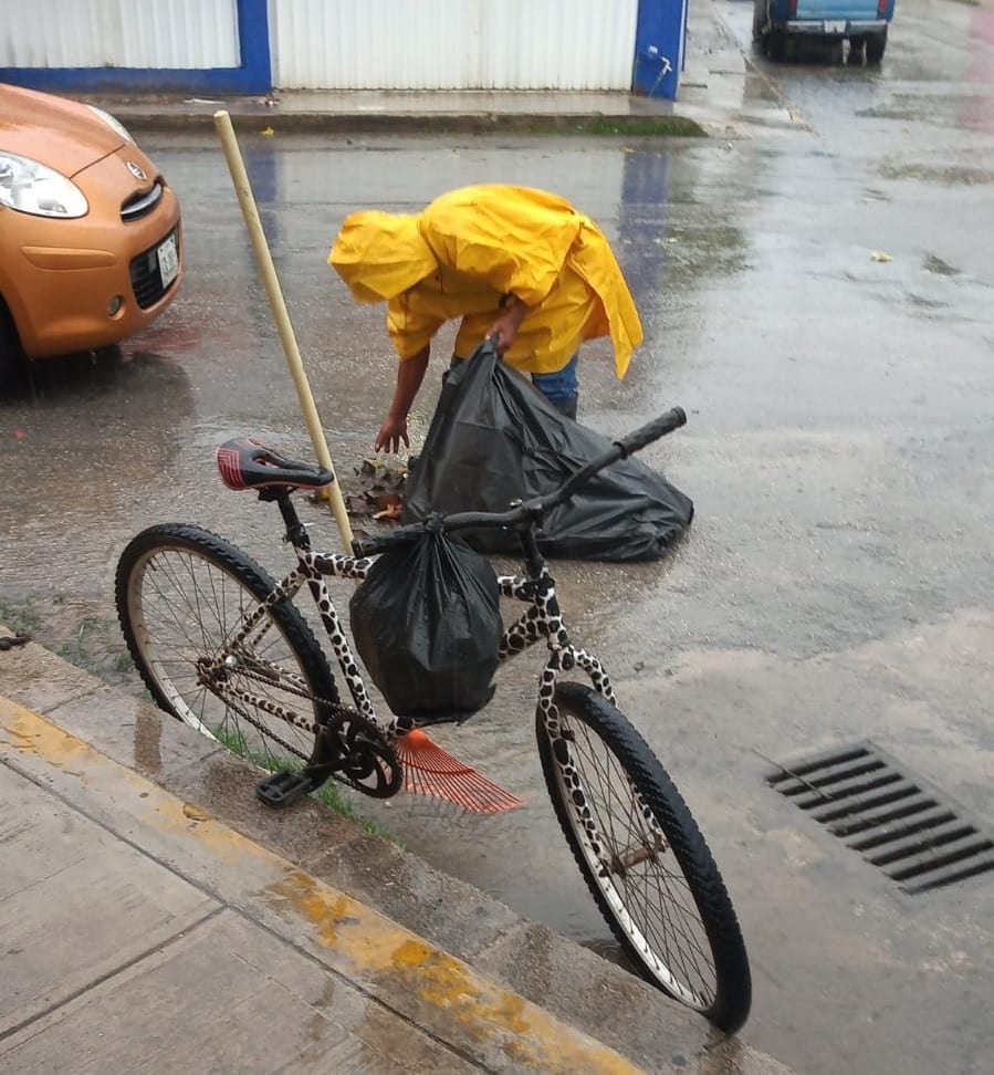 Las cuadrillas de trabajadores retiran basura atorada en las alcantarillas en puntos de anegación, asimismo realizan labores de prevención retirando maleza y ramas que pudieran obstruir el paso del agua en zonas de riesgo de inundación.