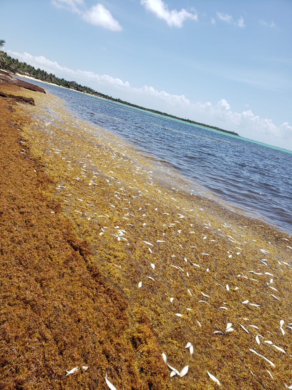 “Exactamente hoy en las costas de Tulum, en teoría es un fenómeno que sucede año con año, sin embargo es triste ver está situación y en esta cantidad”, dice el mensaje en WhatsApp, adjunto con las siguiente fotografías.