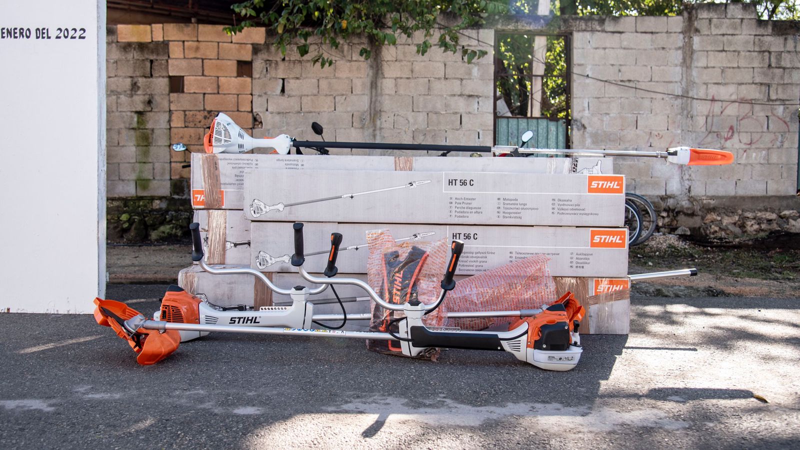 El material entregado consiste en 39 artículos entre los que destacan desbrozadoras, podadoras, elevadores y bolsas recolectoras, así como motosierras y cortasetos.