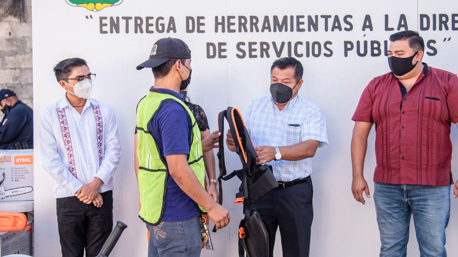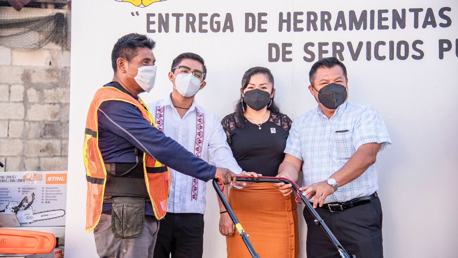 El presidente municipal Marciano Dzul Caamal #MDC entregó la mañana de este jueves nuevas herramientas de trabajo a las mujeres y hombres encargados de mantener limpias y bien iluminadas las calles, banquetas y jardines de la cabecera municipal y las comunidades mayas de Tulum.