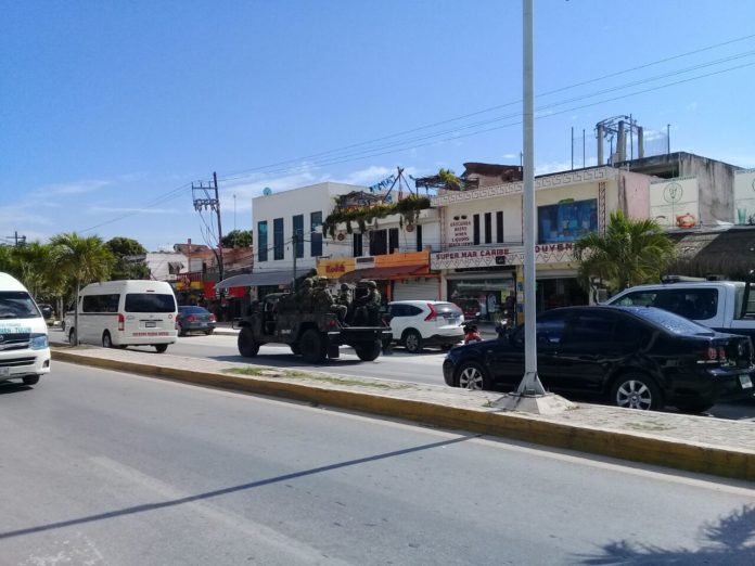 TULUM, MX.- La mañana de este viernes alrededor de 100 elementos de la Secretaría de la Defensa Nacional (SEDENA) reforzaron la vigilancia en la ciudad de Tulum.