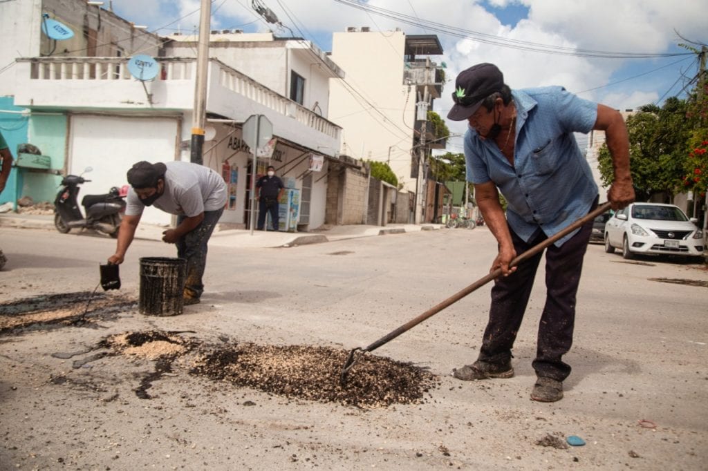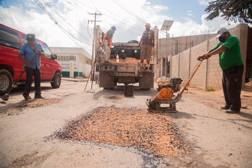 Luego del paso del huracán Zeta y las tormentas tropicales, que dejaron lluvias por las más de 200 centímetros cúbicos de agua en la zona, por indicaciones del presidente municipal Víctor Mas, la dirección de Servicios Públicos inició el trabajo de reparación para eliminar los baches.