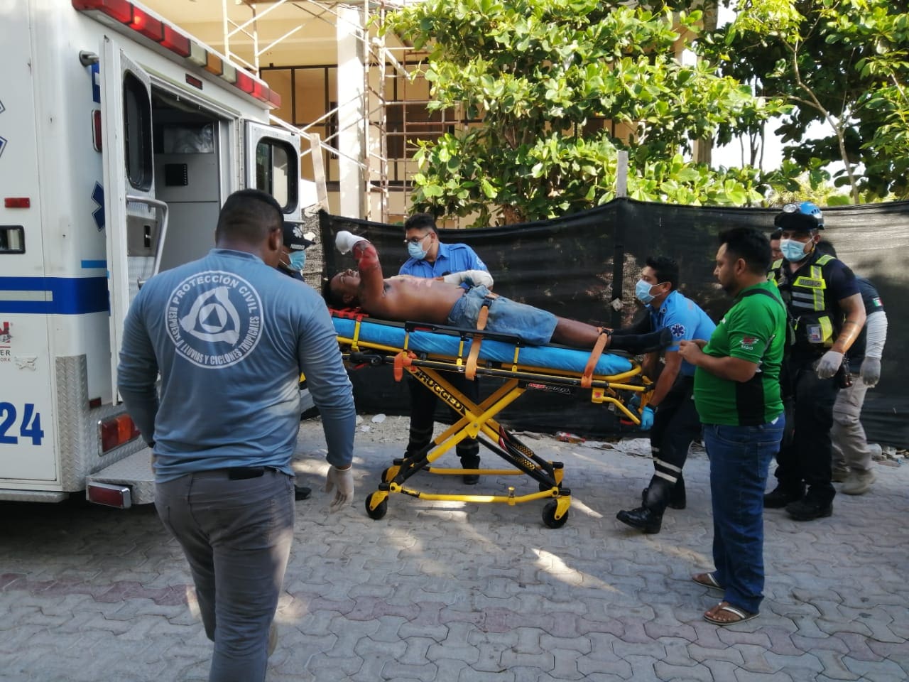 El cancunense Roberto Calvo Gutiérrez, de 24 años de edad, terminó con quemaduras de tercer grado en ambos brazos, además de contusiones por su fuerte caída.