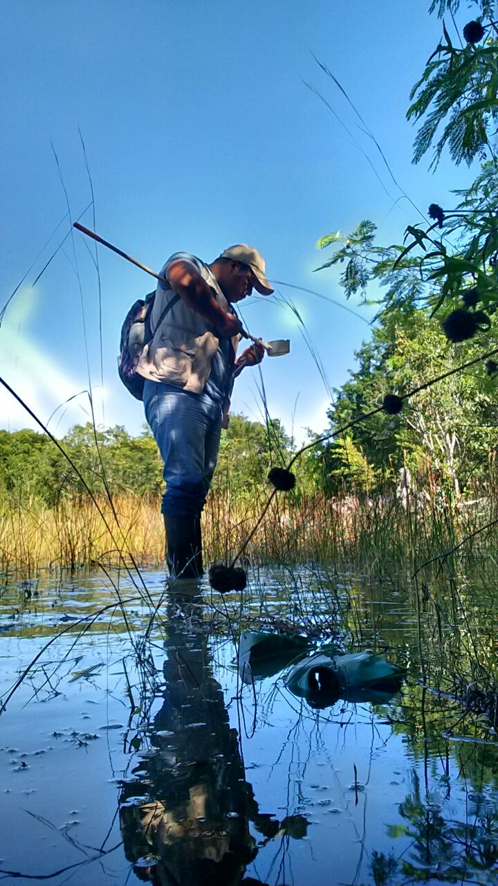 “Con las lluvias se hacen estancamientos de aguas y el grupo de vectores aplica un insecticida roseado sobre el agua para abarcar toda la superficie, aniquilando todo tipo de mosco y el objetivo es que la comunidad no contraiga zika, chikungunya, dengue o paludismo”.