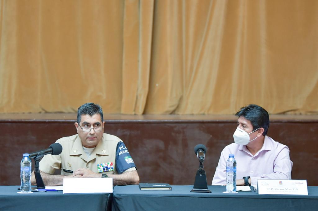 El presidente municipal, Víctor Mas Tah, dio la bienvenida al contralmirante César Ramírez Torralba y agradeció los esfuerzos para cuidar de las playas, enfatizó en la importancia que significa seguir uniendo esfuerzos y trabajar para que cada quien desde su trinchera, tanto en lo individual como en lo grupal, siga trabajando para este fin, “agradezco por esta coordinación muy puntual para cuidar de las playas”, sostuvo.