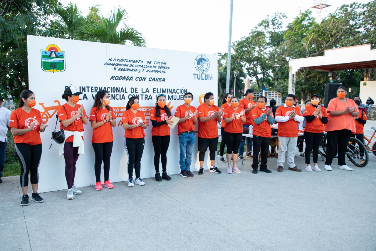 Tulum.- El H. Ayuntamiento de Tulum a través de la coordinación de Igualdad de Género en equipo con la primera y octava regiduría conmemoraron este 25 de noviembre el Día Internacional de la No Violencia Contra La Mujer con una “rodada con causa” en la que participaron funcionarios, regidores y miembros de la sociedad civil vestidos de color naranja que simboliza el recordatorio para prevenir la violencia contra las mujeres y las niñas, que responsabilidad de todas y todos.