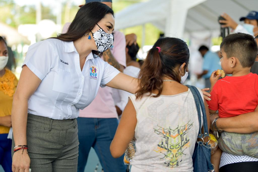 Durante la Caravana de Servicios Municipales, la presidenta honoraria del Sistema DIF Tulum, Celia Mas, a la par del presidente, escuchó a los ciudadanos que acudieron a ella por alguna situación relacionada con el apoyo a las familias, de igual forma pidió a sus colaboradores estar atentos de los menores y los adultos mayores para atenderlos de manera inmediata.