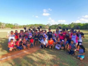 Las deportistas de la comunidad, las cuales conformaron hace dos meses los equipos Faisanas y Diablillas, recibieron de las autoridades caretas, guantes, bates y pelotas para que continúen la práctica de su deporte favorito.