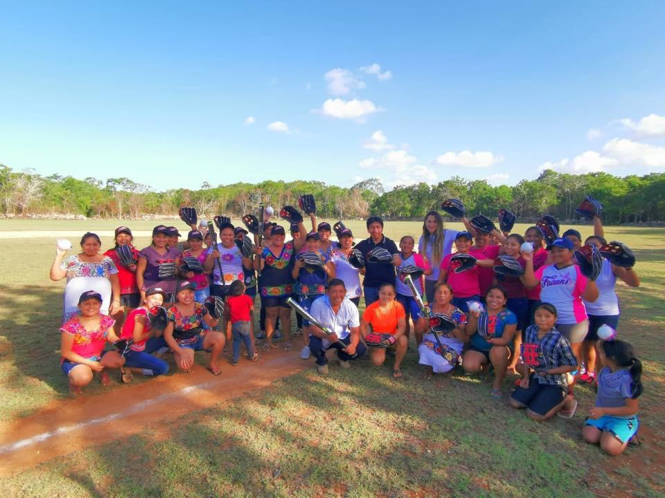 Tulum.- El presidente, Víctor Mas Tah, impulsa el deporte en las comunidades mayas y por esa razón acudió a entregar material deportivo para la Academia Femenil de Softbol en la comunidad de Hondzonot.