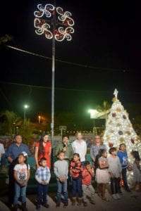 Tulum.- En Tulum se promueve la convivencia entre la ciudadanía y las familias durante las fiestas decembrinas, afirmó el presidente municipal, Víctor Mas Tah, al acudir al encendido de luces del árbol de navideño y la iluminación del parque principal de la comunidad de Akumal, acompañado de la presidenta honoraria del DIF Municipal, Celia Aguilar Mas.