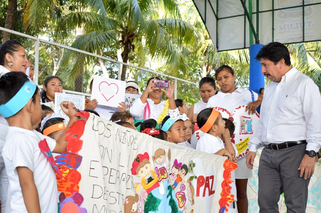 Tulum.- Las autoridades de los tres niveles de gobierno deben escuchar y atender la petición de paz de los niños, por ello, se debe trabajar para cumplir con este anhelo de las próximas generaciones, afirmó el presidente municipal, Víctor Mas Tah, quien resaltó que esta responsabilidad debe ser de toda la sociedad.