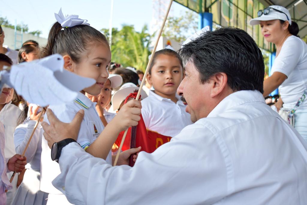 Al encabezar la ceremonia del “Día Mundial contra la Violencia Escolar”, después de una marcha que realizaron los niños de todas las escuelas de nivel preescolar, padres de familia y docentes por la avenida Tulum, señaló que son más las personas que desean vivir en paz y con tranquilidad, son pocos los que por algún interés buscan únicamente la desestabilización de una sociedad.