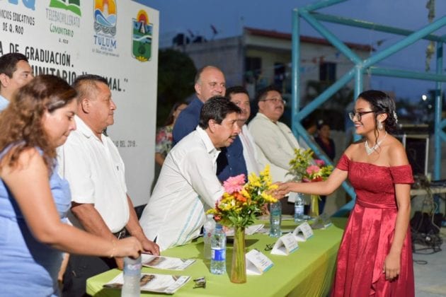 Al acudir a la clausura del Telebachillerato Comunitario de Akumal, precisó que estará presente en las comunidades donde los estudiantes concluyan el ciclo escolar 2018-2019, con el objetivo de motivar a los niños y adolescentes a continuar preparándose académicamente, ya que son el futuro de Tulum.