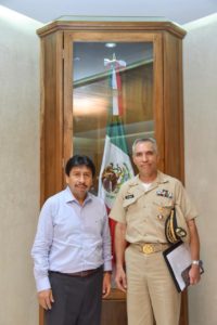 Tulum.- Con el propósito de buscar soluciones efectivas al problema del sargazo que está recalando a las playas de Tulum, el presidente municipal, Víctor Mas Tah, sostuvo una reunión con los representantes del gobierno federal, contralmirante de la Secretaría de Marina, Enrique Flores y del gobierno del estado, Juan de la Luz Enriquez.
