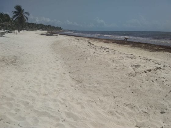 Desde la Bahía de Akumal pasando por la Biosfera de Sian Ka’an hasta Punta Allen, en una extensión de poco más de 70 Kilómetros de la zona costera, muchos tramos de las playas prácticamente sin esta macroalga.