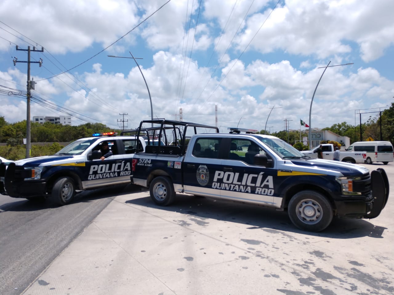 Cancún.- Dos sujetos a bordo de una motocicleta, que resultaron tener un arma de fuego, intentaron escapar sobre la avenida Guayacán de las fuerzas policiacas, pero terminaron detenidos, uno de ellos con un disparo de bala por parte de un agente uniformado.
