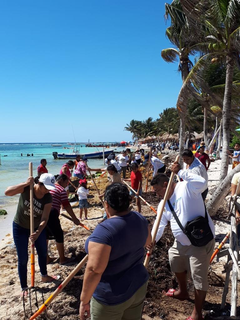 La actividad comenzó a las 9:30 horas frente a las playas de Maya Bar, logrando limpiar 400 metros lineales de playa en los que se recolectó una tonelada de sargazo.