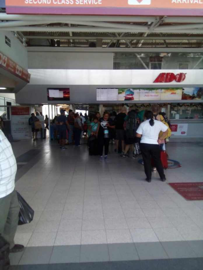 Es así como transcurre un día común durante estos días en el ADO y palabras más palabras menos al estilo de Alex Lora: unos llegan pero otros, los más, “están esperando su camión en la terminal del ADO”.