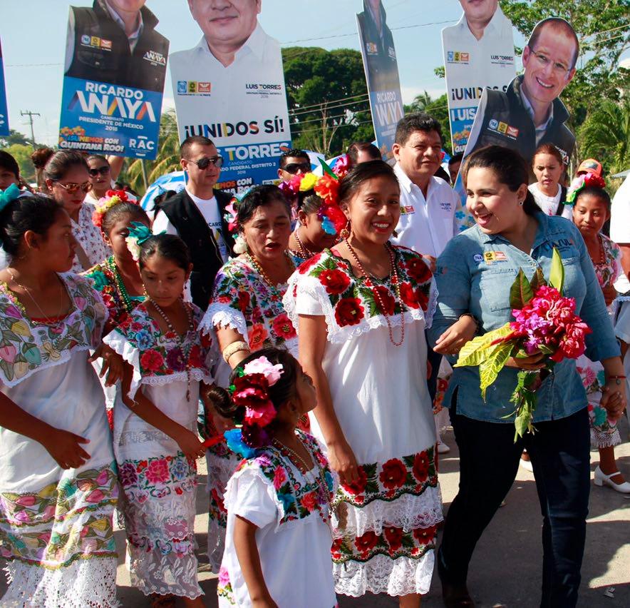 En José María Morelos, con Sofía Alcocer Alcocer, candidata a la presidencia municipal, Mayuli Martínez apuntó que “de la mano de Ricardo Anaya y con el apoyo de los padres de familia, del sindicato y los maestros, vamos a lograr una auténtica revolución educativa en el país, que permitirá mayores oportunidades de desarrollo”.