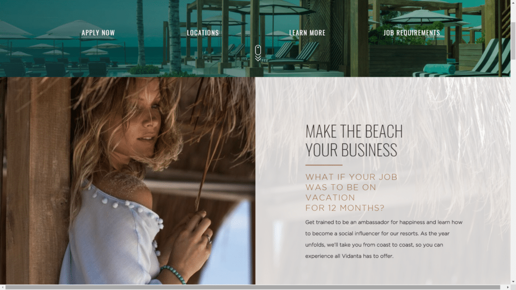 La vacante para este empleo propuesto por Grupo Vidanta consiste en hospedarse por un año en hoteles de esa firma en destinos como Nuevo Vallarta, Riviera Maya, Los Cabos, Acapulco, Puerto Peñasco y Puerto Vallarta.