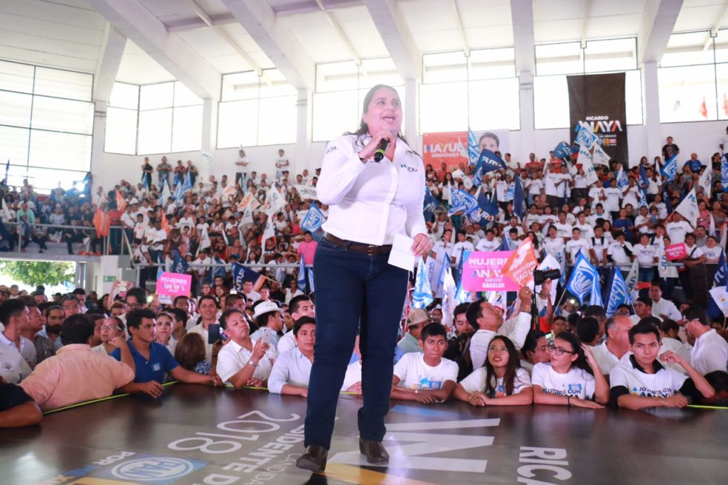 Quintana Roo.-Mayuli Martínez, candidata a senadora por la coalición “Por Quintana Roo al frente”, respaldó la propuesta del candidato presidencial Ricardo Anaya Cortés, de mejorar las condiciones salariales de miles de mujeres en Quintana Roo.