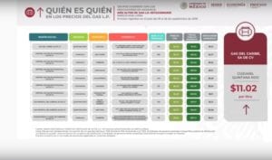 Agregó que “Mientras que en los cilindros, en Gas del Caribe, S.A., en Cozumel, Quintana Roo, tenemos el precio más alto por kilo, a 20 pesos con 41 centavos con el margen más alto de nueve pesos con cinco centavos”.