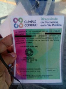 A petición del reportero, un comerciante gustoso enseñó el permiso expedido por la Dirección de Comercio en la Vía Pública con la leyenda de “pirotecnia artesanal fría y artículos navideños”.