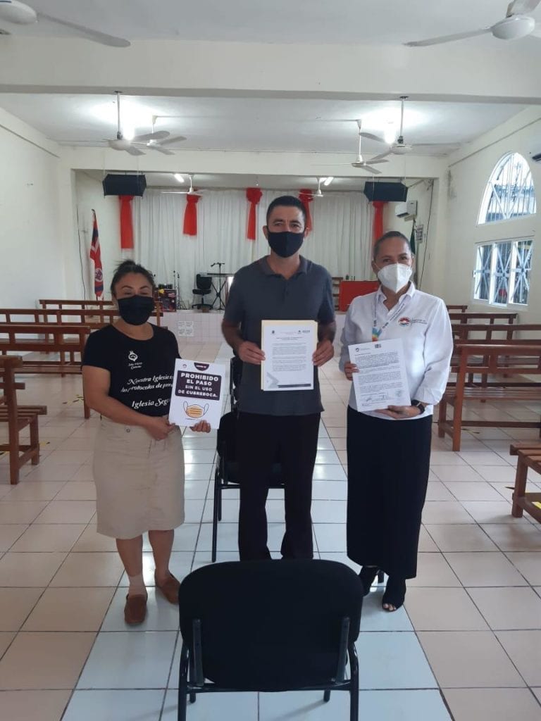 La titular de la dependencia municipal, Claudia Gómez Verduzco, informó que se realizaron recorridos por la Iglesia Adventista, Iglesia de Dios de la Profecía, Asambleas de Dios y Centro Cristiano Cancún, junto con los representantes de estas religiones, en donde se les entregó a cada uno de los líderes eclesiásticos los protocolos escritos que emitieron las autoridades sanitarias, para que los hagan llegar a cada uno de sus integrantes y así redoblar esfuerzos en el objetivo de evitar la propagación de COVID-19.
