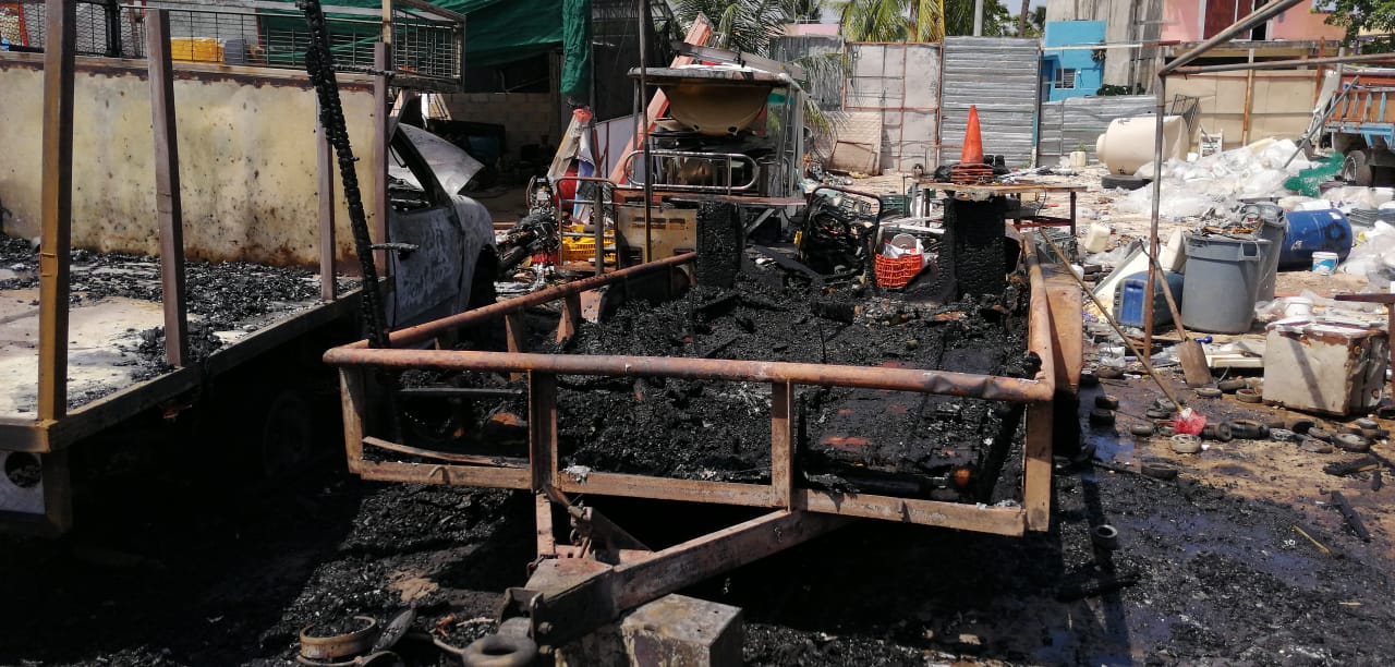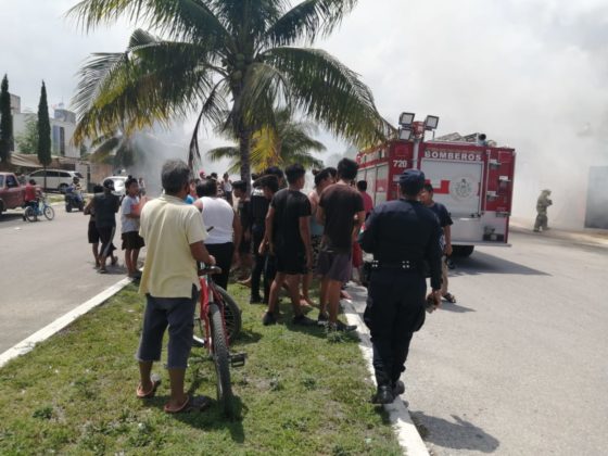 También acudieron ambulancias con paramédicos y la Policía Municipal de Solidaridad para acordonar el área; mientras elementos del cuerpo de bomberos luchan para controlar el voraz incendio en la empresa de manejo de chatarra en la “avenida México”. Hasta el momento no se han cuantificado los daños.