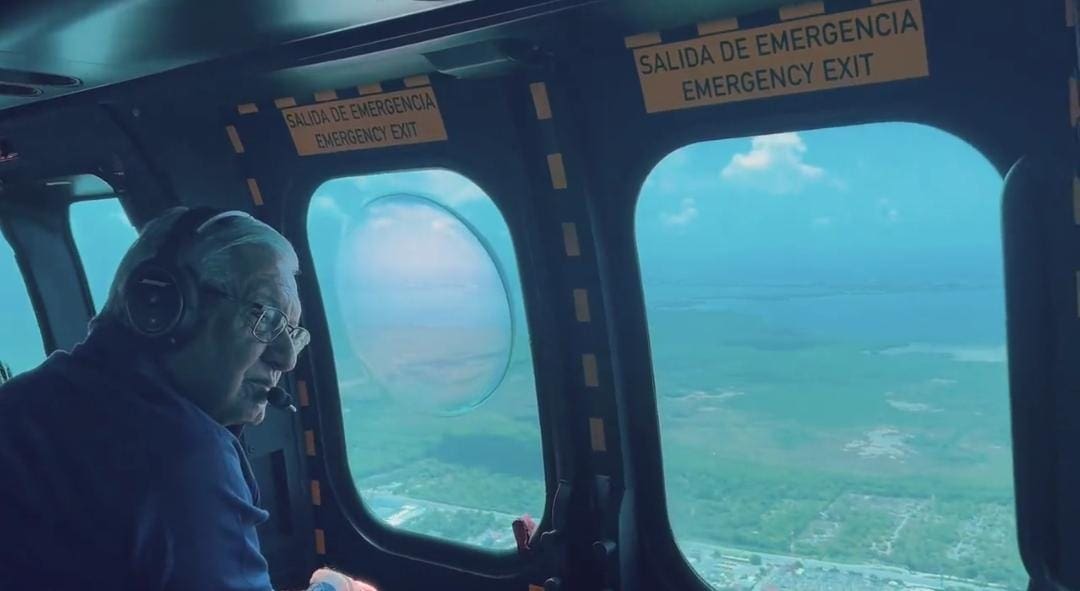 El presidente Andrés Manuel López Obrador (AMLO) sobrevoló este domingo el tramo del Tren Maya que va de Mérida, Yucatán a Cancún, Quintana Roo. Al sobrevolar la zona aseguró que ya se registra un avance del 50 por ciento en el tramo que va de Mérida a Cancún.