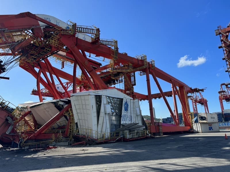 Este lunes se registró un accidente en el puerto taiwanés de Keelung, donde un buque comercial que transportaba una grúa nueva colisionó con una de las máquinas antiguas del muelle.
