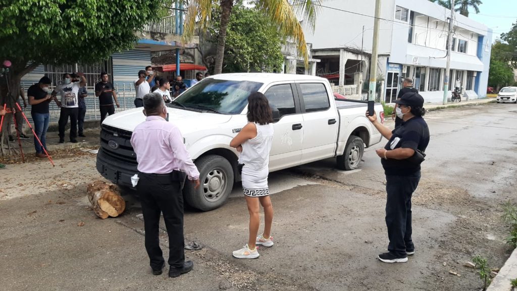 Este grupo de personas, traídas por Mimenza Novelo desde Cancún en unos autobuses para manifestarse en contra del gobierno, ya iba de regreso a los autobuses, cuando el empresario notó la presencia de esta camioneta sin placas, por lo que fue a encararlos, gritándoles que se bajen, y a sus seguidores que los atrapen.