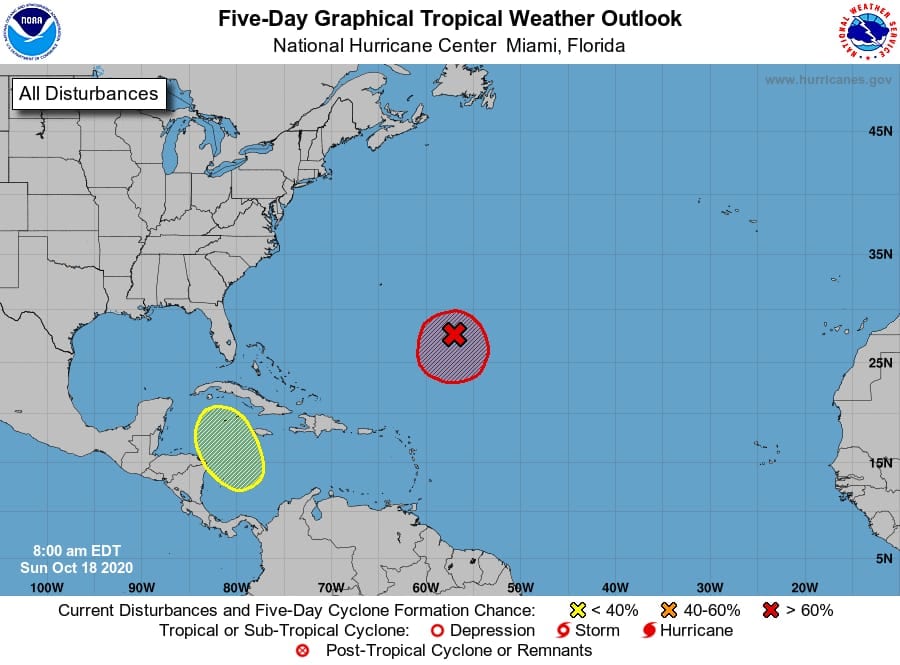 La primera se encuentra a tres mil kilómetros al este-noreste de las costas quintanarroenses, con desplazamiento hacia el sur-suroeste y de acuerdo con los especialistas, tiene un 80 por ciento de probabilidad de evolucionar a ciclón tropical en las próximas 48 horas y 90 por ciento en cinco días.
