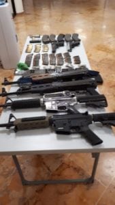 Durante la detención fueron aseguradas seis armas largas tipo AR-15 y AK-47, así como dos pistolas calibre nueve milímetros, tres vehículos con reporte de robo y dos motocicletas.