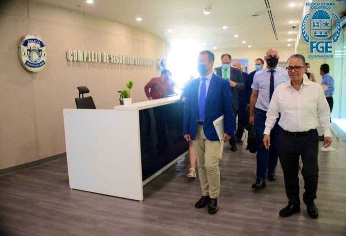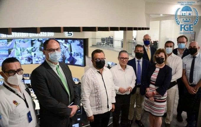 Cancún.- Representantes de seis naciones europeas hoy visitaron las instalaciones del C5, en donde se reunieron con personal de la Fiscalía General del Estado.