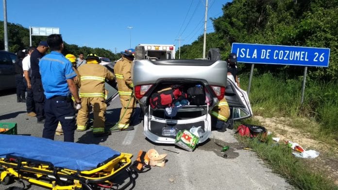 Playa del Carmen.- Una turista extranjera se fracturó la pierna luego de volcar su automóvil en la carretera Tulum-Playa del Carmen, a corta distancia de Punta Venado.
